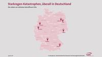 Mit der Erderwärmung nehmen die Wetterextreme auch in Deutschland zu. Die Winter werden milder, die Sommer heißer. Die Gefahr starker Unwetter, Regen und Stürme, steigt.